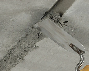 Reprofilierung eines Kantenabbruchs an einer frisch aus-geschalten Garage bei einer Oberflächentemperatur von + 70 °C mit Nafuquick HT.